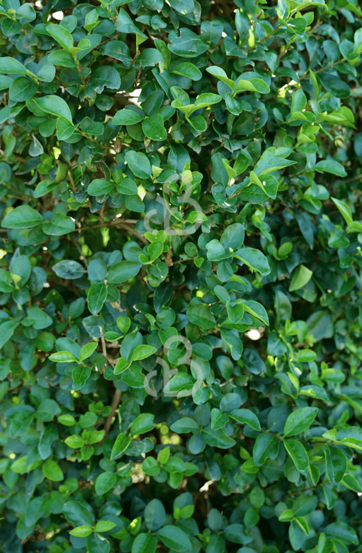 Het blad van de Ligustrum ovalifolium is ovaalvormig en diepgroen van kleur.