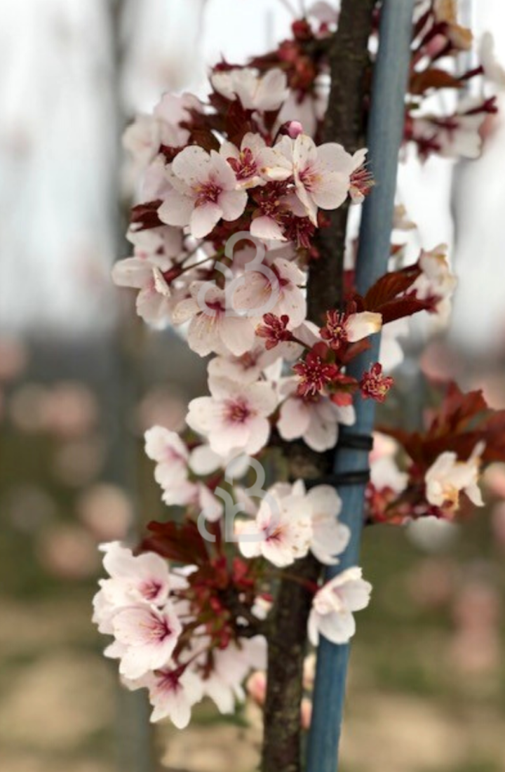 De prunus is een bekende roodbladige leiboom, in het vroege voorjaar ontstaan er roze bloemetjes, de bloemen ontstaan nog voordat het blad aan de boom zit. Deze leiboom bloeit zeer uitbundig en staat graag op een zonnige plek in de tuin.