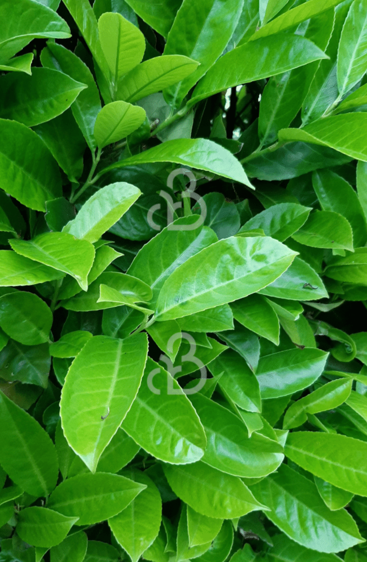 De bladeren van de Prunus laurocerasus 'Rotundifolia'