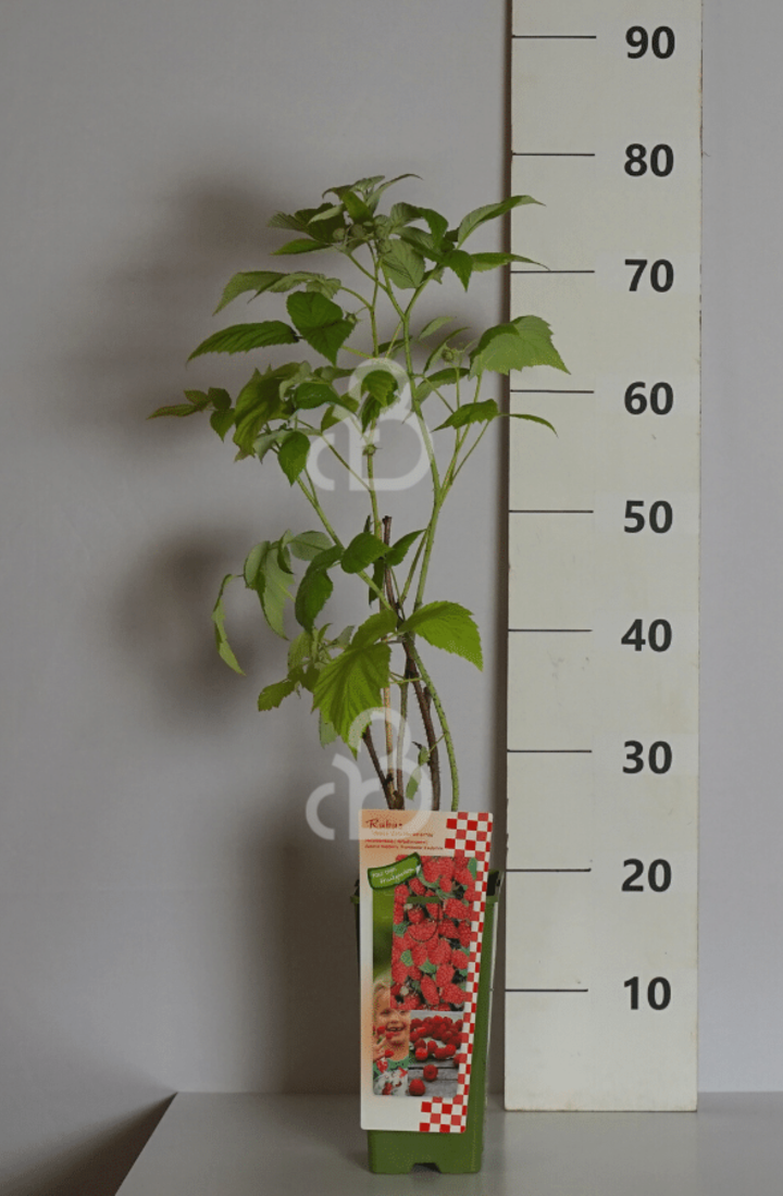 De plantafstand voor deze framboos is ongeveer 30 cm.